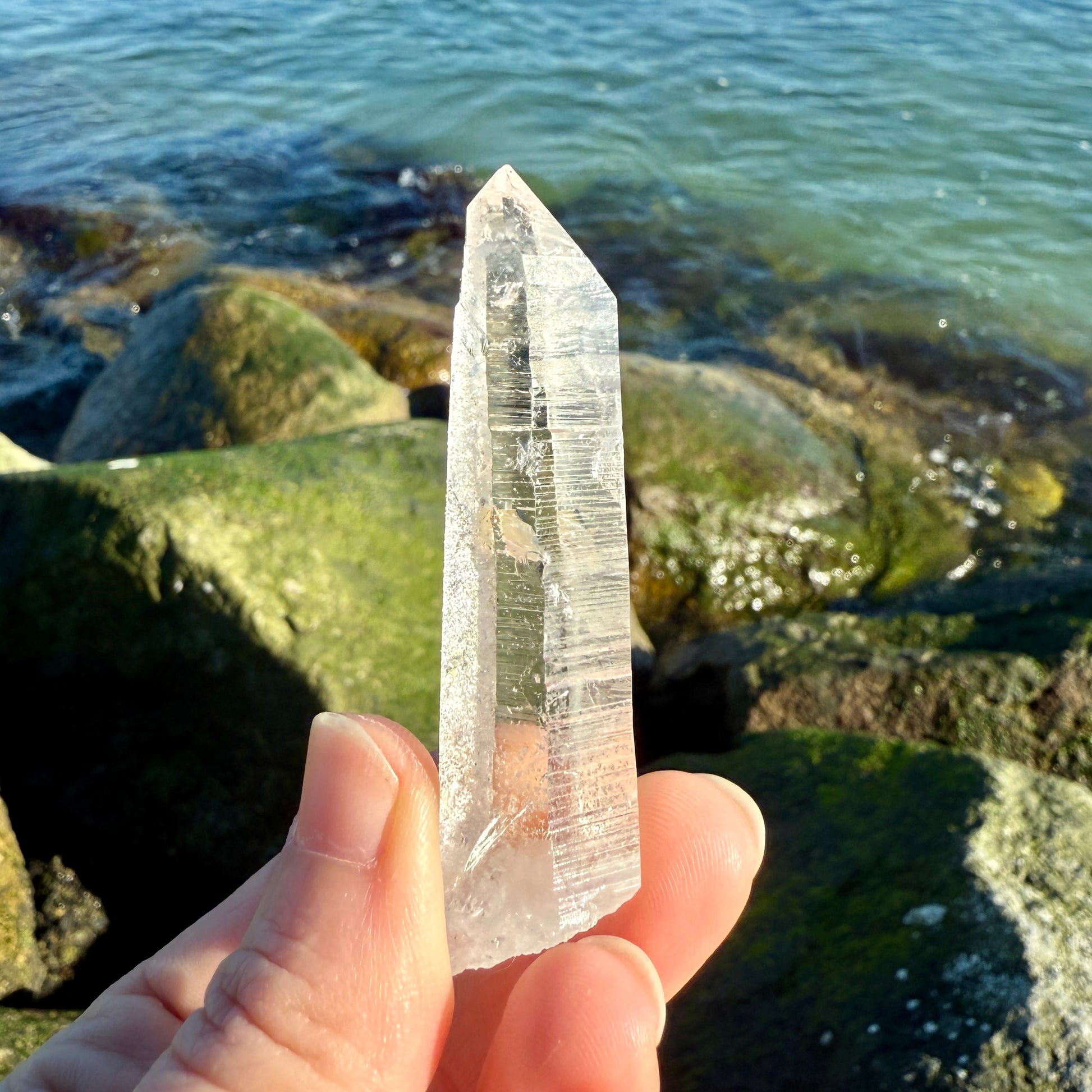 Natural high grade Lemurian Quartz crystal with Starbrary markings, from Santander, Colombia.
