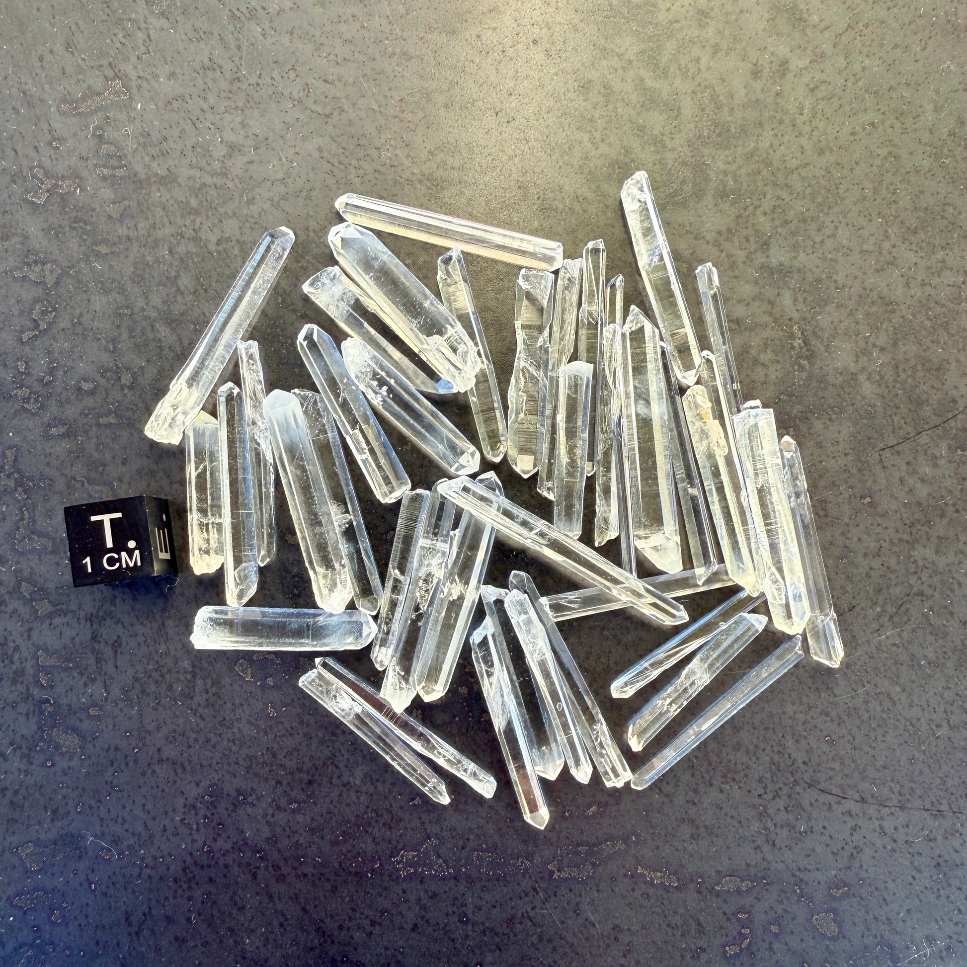 Lemurian Quartz crystal tiny thin points from Santander, Colombia. Many are singing Quartz crystals. Some have phantoms. Perfect for crystal gridding, jewelry & crafting.